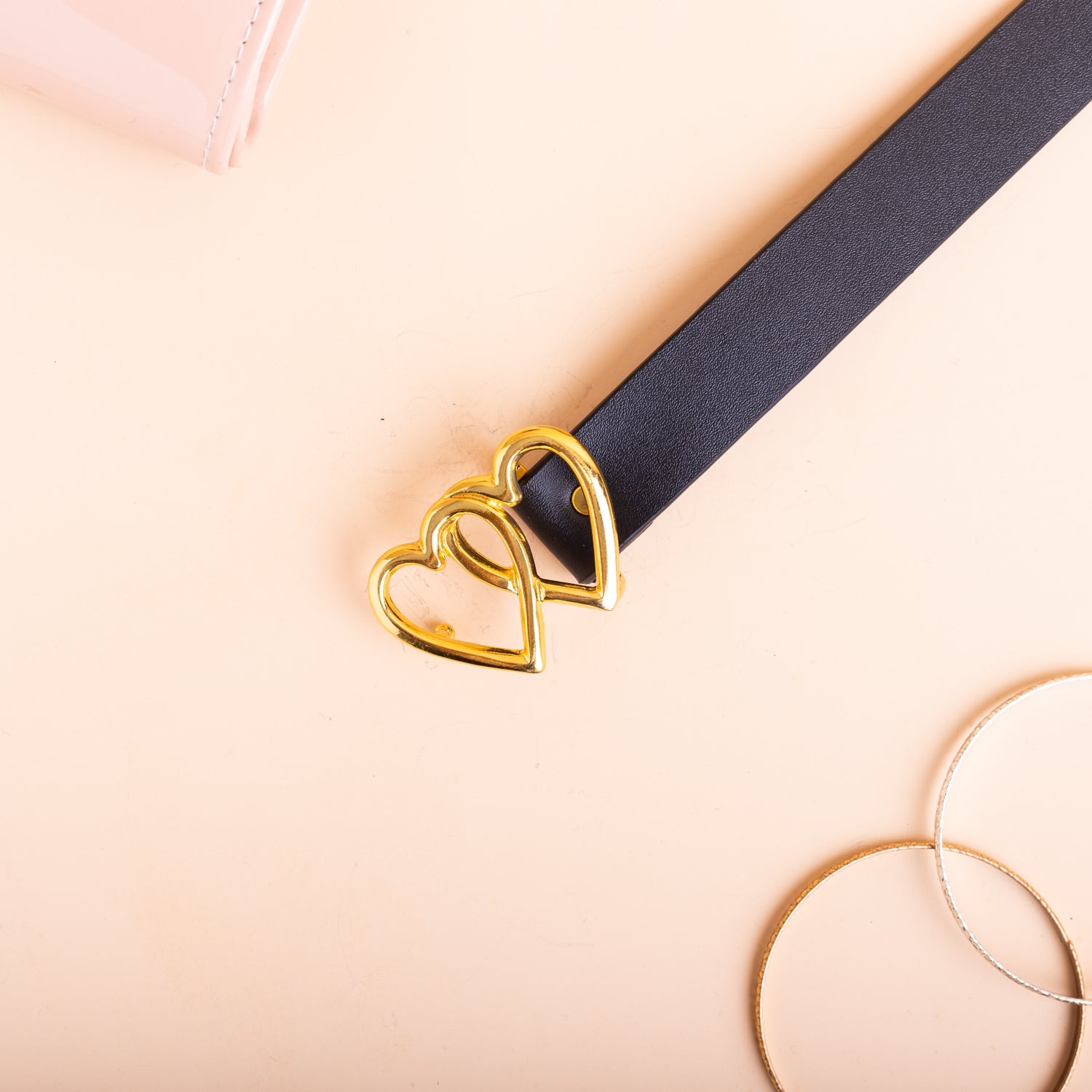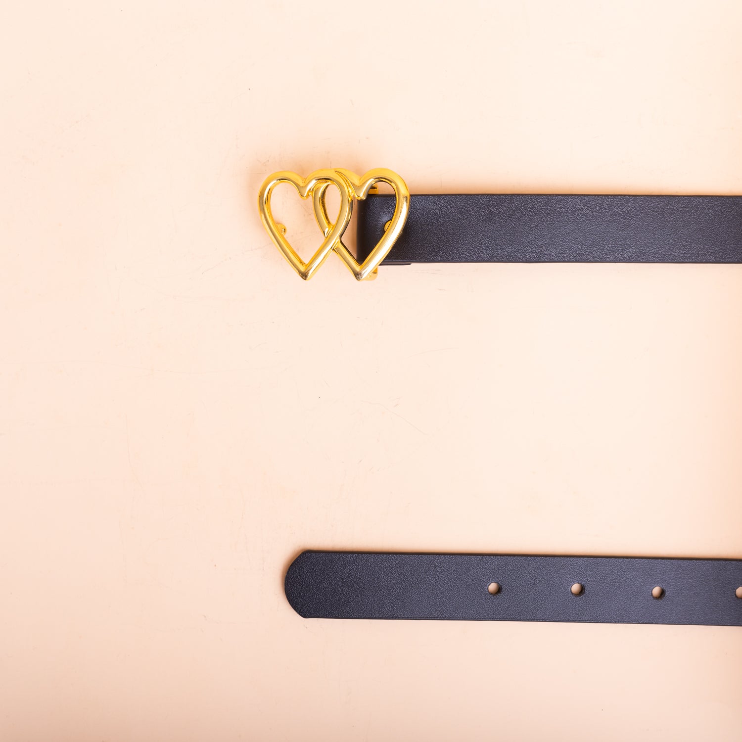 Correa Doble Corazon Dorado - Negro