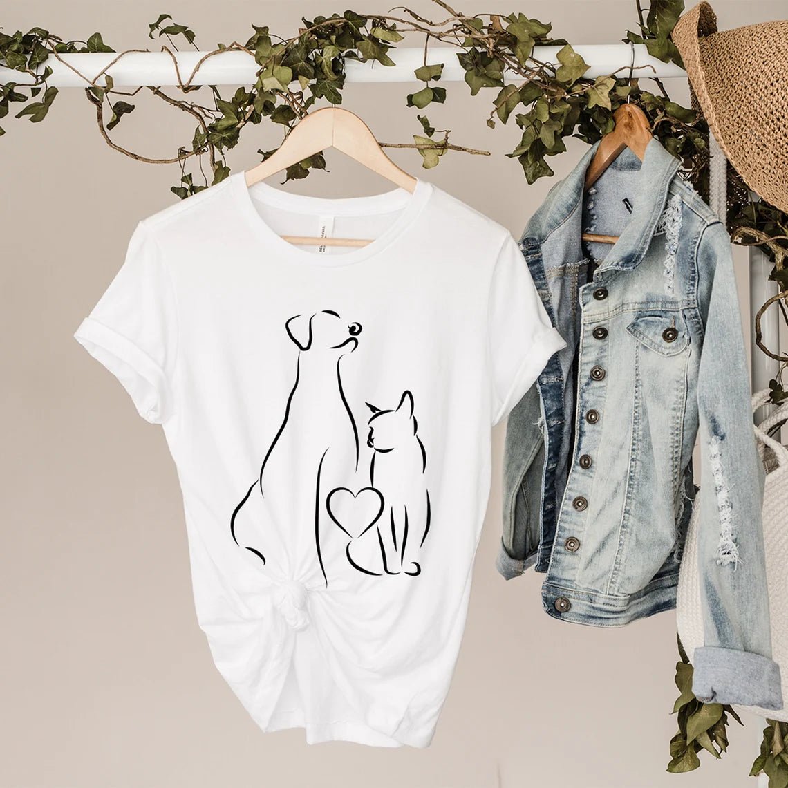 Polo Personalizado - GATO Y PERRO CON CORAZÓN