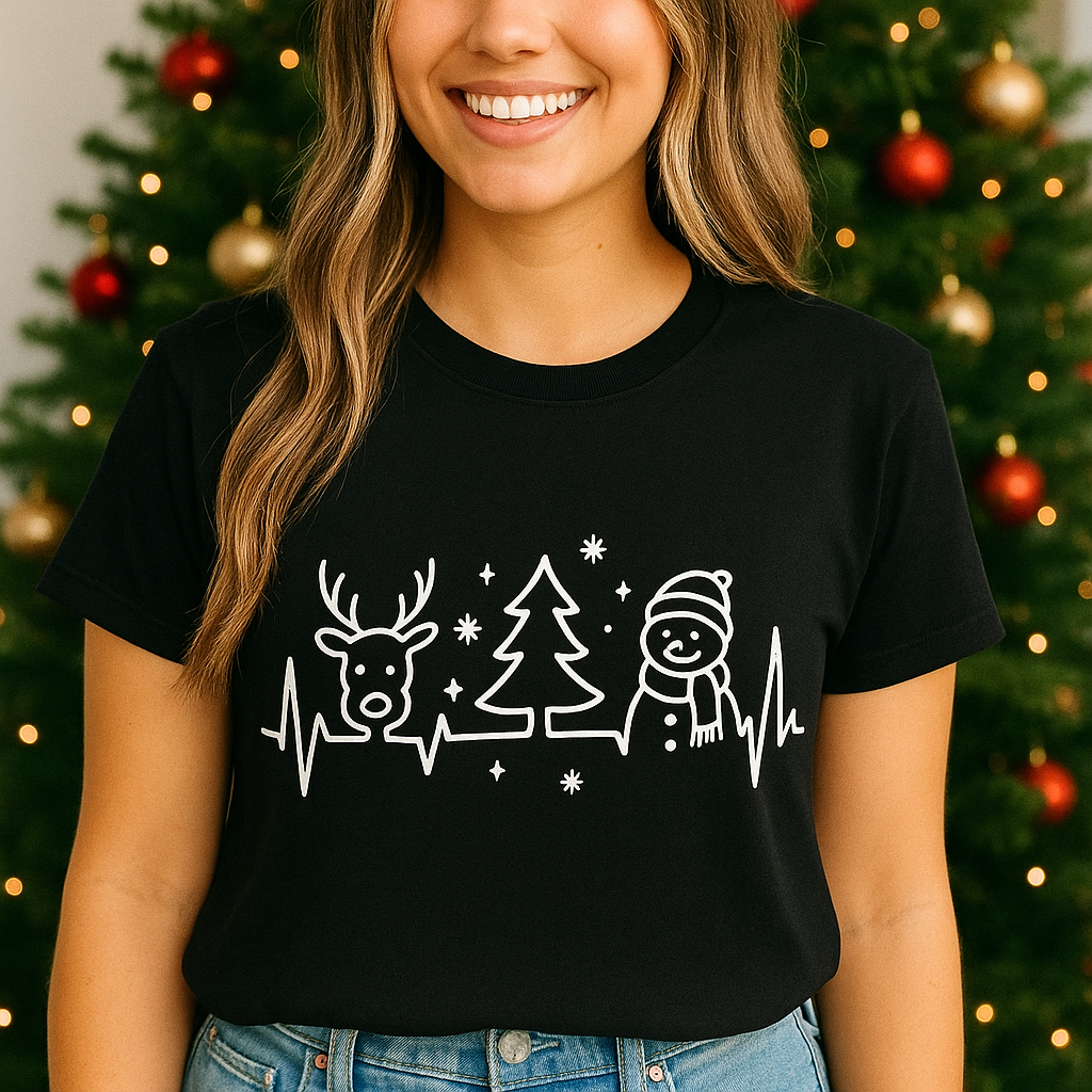 Polo Navideño Mujer - Reno, Arbol y Muñeco de Nieves